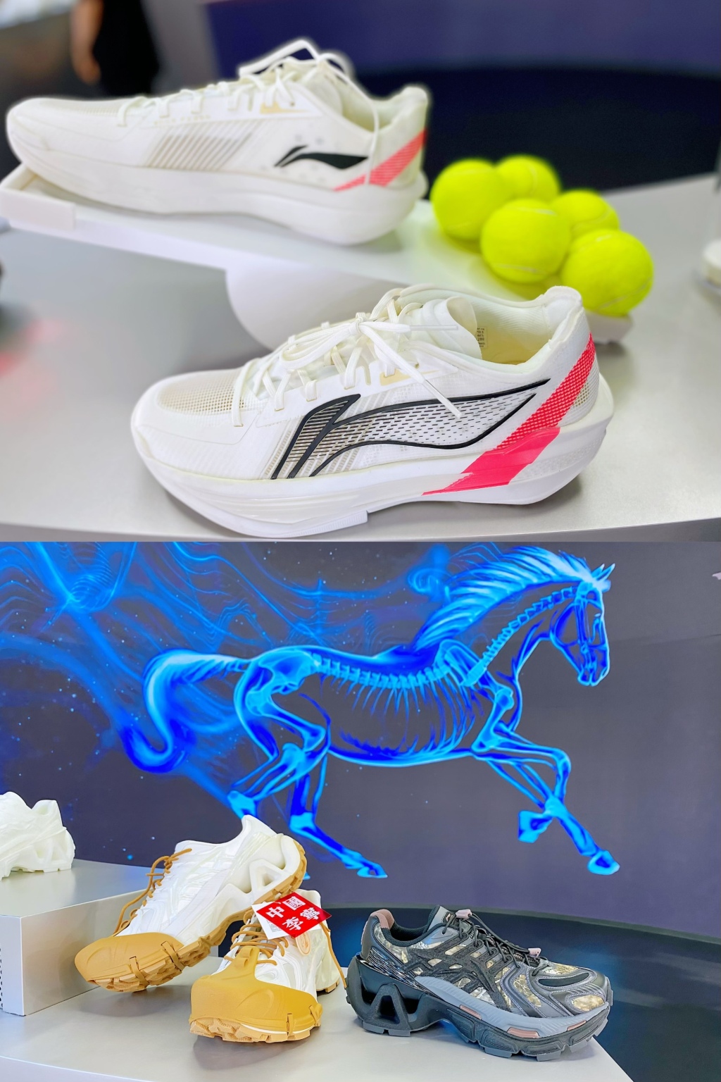 在李寧展臺(tái),兩款充滿設(shè)計(jì)感的運(yùn)動(dòng)鞋引來觀眾圍觀。此次參展的ULTRALIGHT 2025籃球鞋以復(fù)古跑車為靈感,以42碼260克的超輕重量突破了專業(yè)籃球鞋的想象空間。現(xiàn)場的稱重天平顯示,其重量輕于五只網(wǎng)球。另一鞋款則是烈駿ACE3.0,從中國傳統(tǒng)文化中的“戰(zhàn)馬”意象汲取靈感,將戰(zhàn)馬的肌理力量與中式寫意線條的精髓融入大廓形設(shè)計(jì),并采用經(jīng)輕質(zhì)化處理的橡膠IBR材質(zhì)鞋底,兼顧耐磨與輕便。