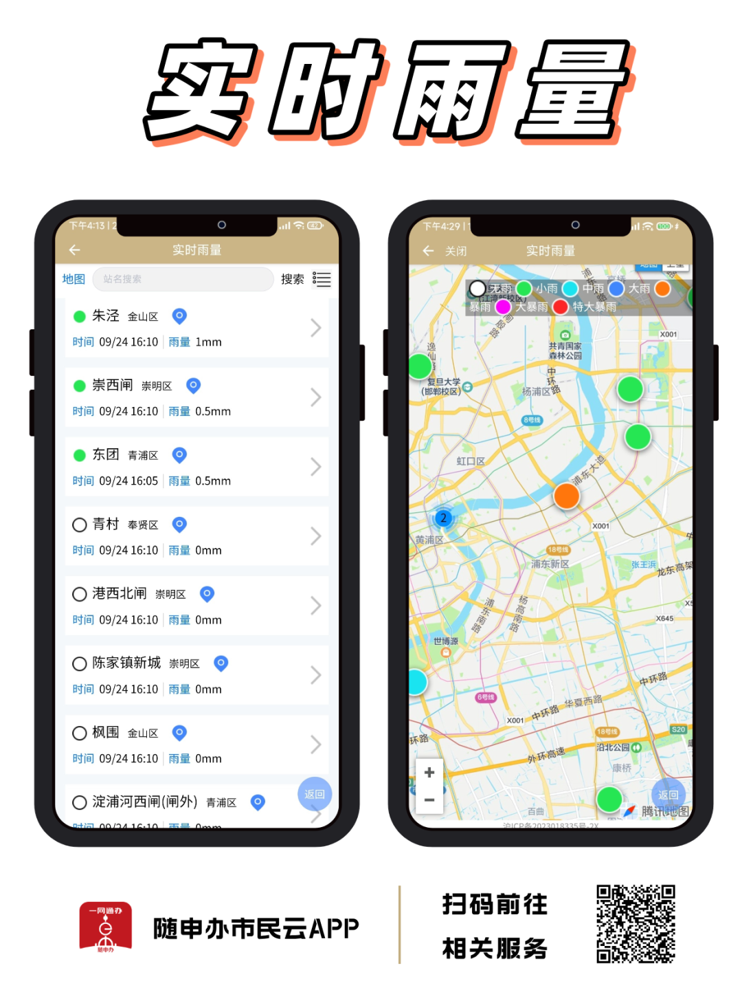 “隨申辦市民云”APP【實(shí)時雨量】,上海全市雨量實(shí)時知曉