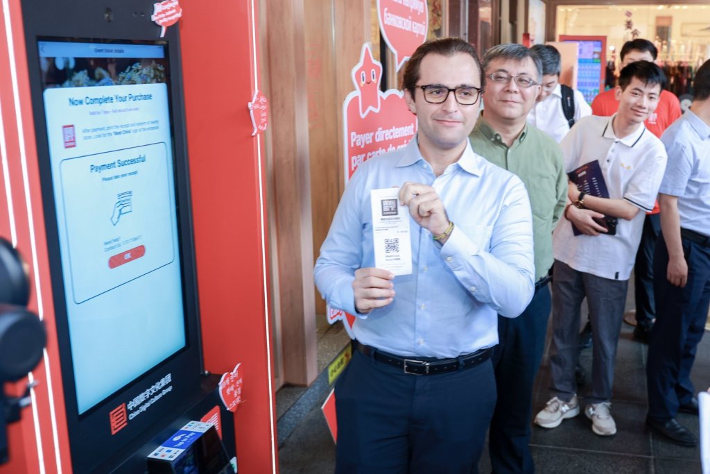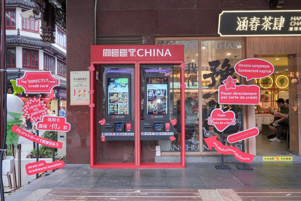 所有菜品均配有“秒懂”式說(shuō)明、多語(yǔ)種翻譯和成分標(biāo)注,清楚提示配料、過(guò)敏原及素食等信息,既直觀易懂又貼心便利。選定套餐后的支付過(guò)程亦十分便利,大屏已實(shí)現(xiàn)“國(guó)外銀行卡一刷支付,無(wú)需綁定、無(wú)需掃碼、無(wú)需下載app”的便捷“絲滑”支付,可接納120余個(gè)國(guó)家的貨幣,外籍游客只需拿出銀行卡,貼一下馬上就可以支付,實(shí)現(xiàn)在文旅消費(fèi)場(chǎng)景落地的“國(guó)際支付秒通”。支付操作完成,系統(tǒng)隨即打印核銷(xiāo)憑證,游客可憑此前往張貼有“Meet China”標(biāo)簽的周邊線下門(mén)店進(jìn)行商品核銷(xiāo)和實(shí)物領(lǐng)取。
