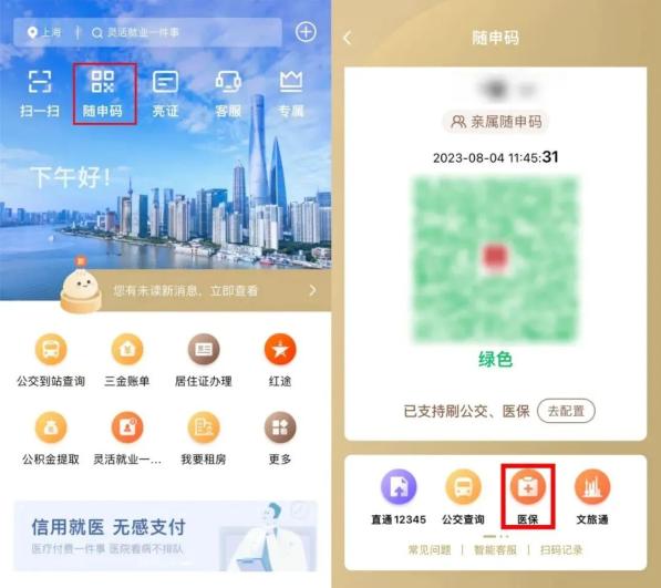 第一步:實(shí)名認(rèn)證并登錄“隨申辦市民云”APP,打開(kāi)首頁(yè)上端“隨申碼”,進(jìn)入下方“醫(yī)保”。