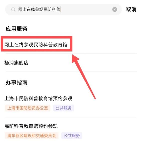 進(jìn)入方式:打開(kāi)“隨申辦市民云”APP,首頁(yè)搜索欄搜索“網(wǎng)上在線參觀民防科普教育館”點(diǎn)擊相應(yīng)選項(xiàng)進(jìn)入。