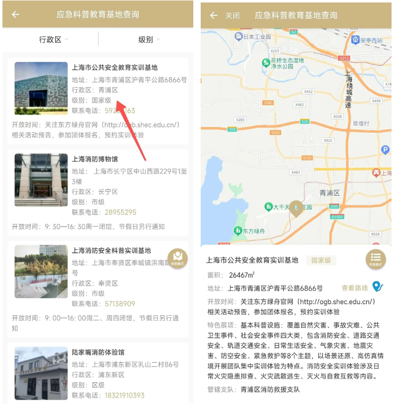 第一步:點(diǎn)擊想去的科普基地,即可跳轉(zhuǎn)頁(yè)面詳情。