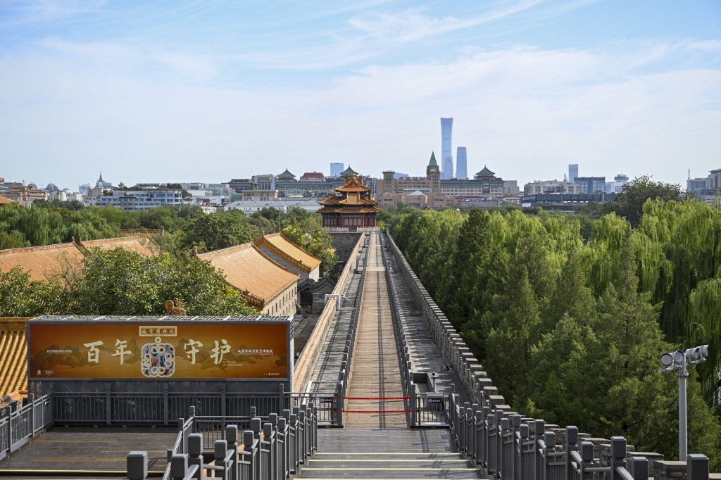 這是9月29日拍攝的故宮一角及展覽海報(bào)(左下)。徐嘉懿/新華社 圖