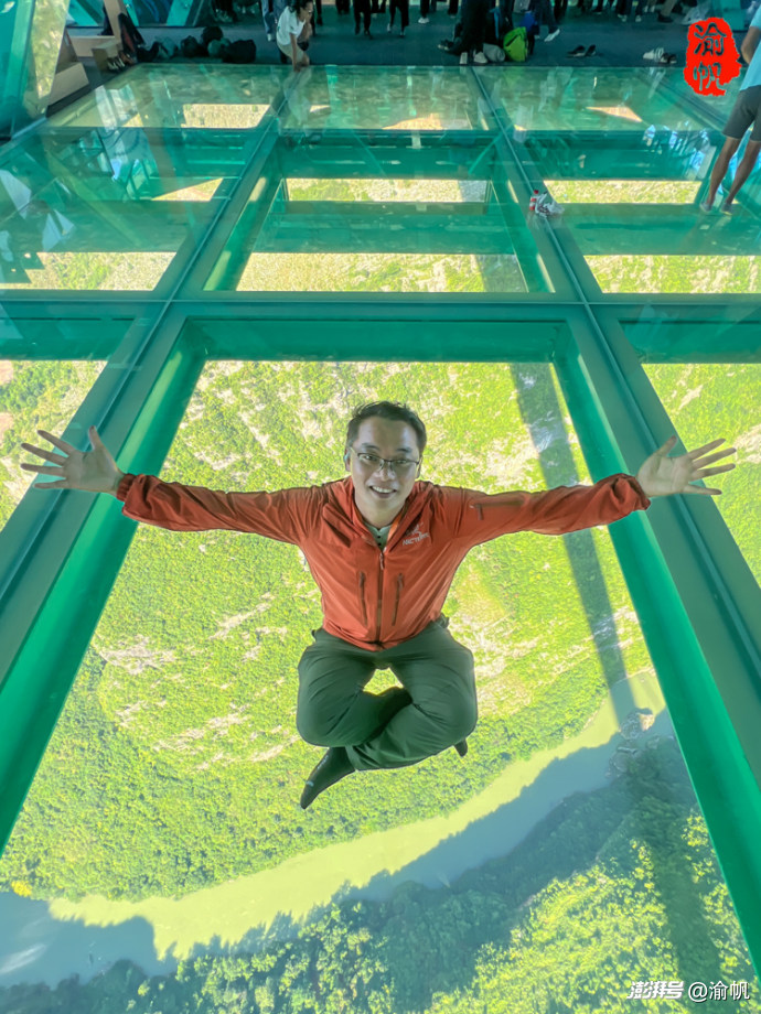 與之相鄰的還有“步步驚心”項目,懸空間隔木板,每步踏出都伴隨搖搖晃晃的懸空刺激感。更令人血脈僨張的是1411米長的“高空競速跑道”,游客系著安全繩在1.5米寬的賽道上奔跑,腳下是翻涌的云海與深不見底的峽谷,想想都刺激,估計很多朋友只能看,卻不敢玩。