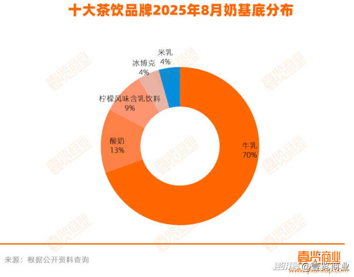 奶基底方面,牛乳仍是主流選擇,共用于16款飲品,但多元化與天然化趨勢愈發(fā)明顯。隨著立秋過后氣溫漸降,品牌開始增加米乳、芝士、酸奶等濃郁型奶基底的使用,以提升口感飽滿度與滿足感。
