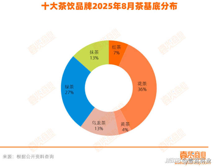 從使用量來看,花茶以16次的高頻使用成為最受青睞的茶底,茉莉花茶、桂花茶等經(jīng)典茶底繼續(xù)擔綱主流。不過品牌在使用方式上更趨精細:茶百道“陽光青提冰奶”以茉莉花茶襯托青提清香;CoCo都可“一抹清茉”則將抹茶與茉莉花茶拼配,創(chuàng)造新的風味層次。