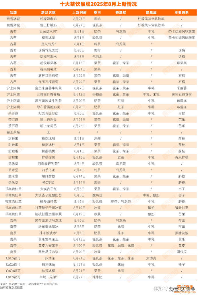 值得注意的是,霸王茶姬在8月無新品動作,這可能與其“大單品”策略有關。