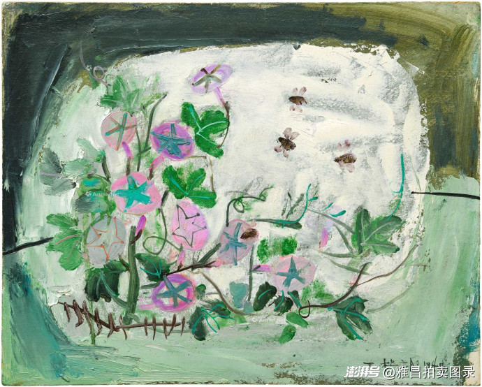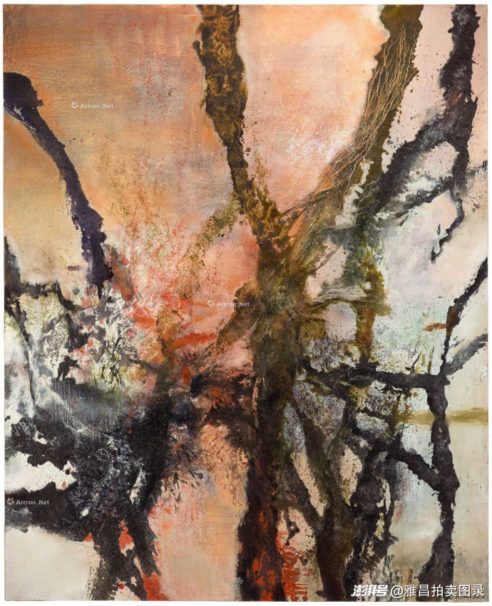 本季的第二高價(jià),趙無(wú)極《27.01.86》以2980.5萬(wàn)港元成交。在此作中,他運(yùn)用水墨的厚、薄、干、濕等特性,構(gòu)建出多維空間感與廣闊氣勢(shì),宛若一棵生命之樹(shù)向無(wú)限空間蔓延生長(zhǎng),象征著生命的蓬勃向上。1988年,他受邀為首爾奧委會(huì)創(chuàng)作宣傳海報(bào)《生命之樹(shù)》,亦是以本作《27.01.86》為原型,體現(xiàn)奧林匹克精神。