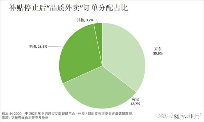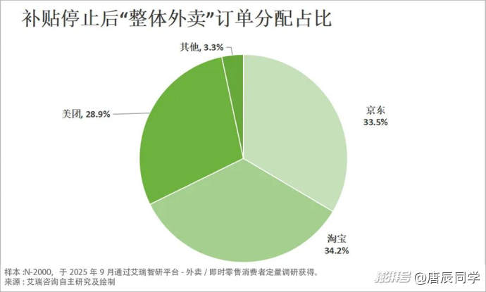 圖源:補(bǔ)貼停止后“整體外賣(mài)”訂單分配占比 艾瑞咨詢
