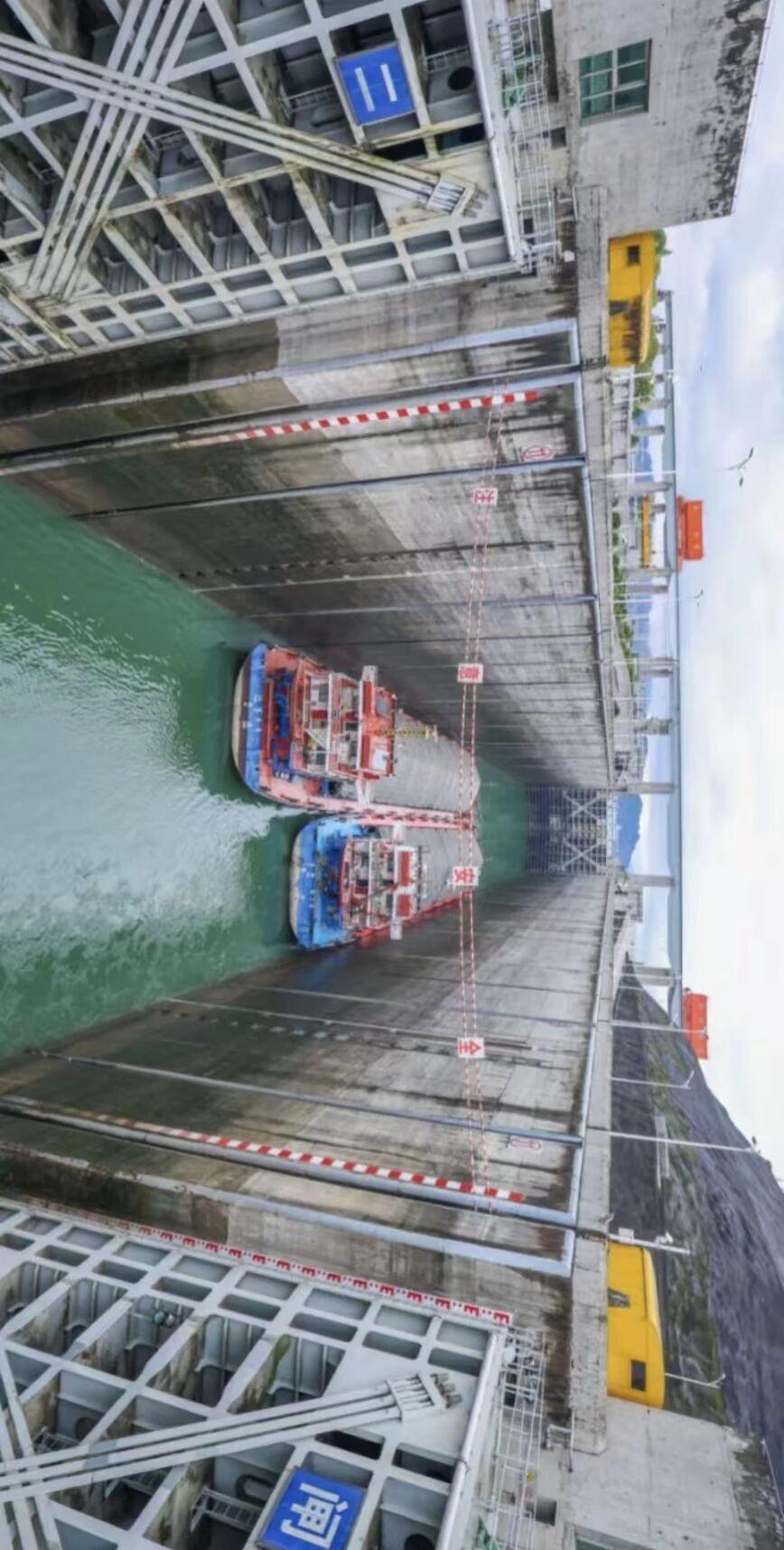船舶正在通過三峽大壩五級船閘。攝影蔣雨師,已獲授權(quán)