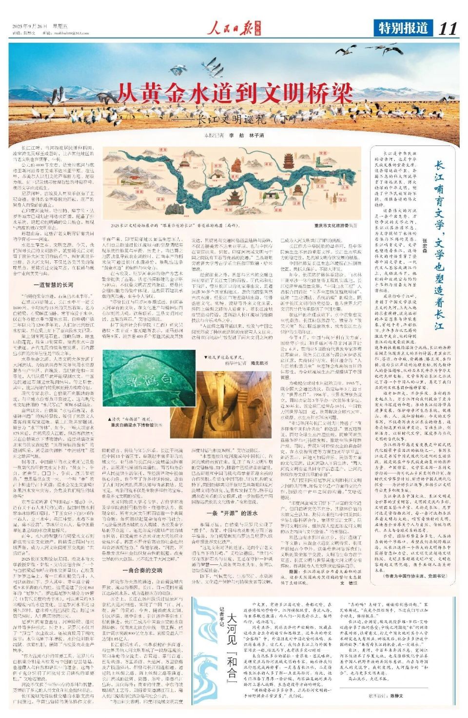 長江奔流在中國大地,長江文明是全世界的寶貴財富,文明因交流而多彩、文明因互鑒而豐富。無論是長江、尼羅河還是密西西比河,每一條河流都在滋養(yǎng)著文明與大地,哺育著獨特的文明,啟迪著全世界關(guān)于人與自然、傳統(tǒng)與現(xiàn)代、本土與全球關(guān)系的思考。