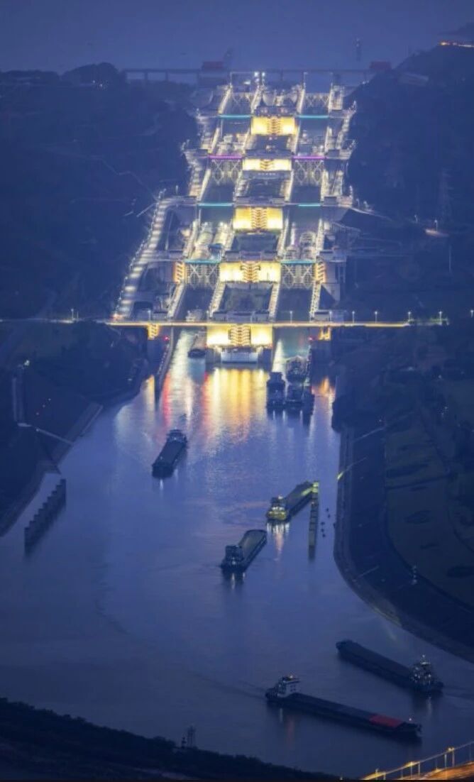 三峽大壩五級船閘夜景。攝影蔣雨師,已獲授權(quán)
