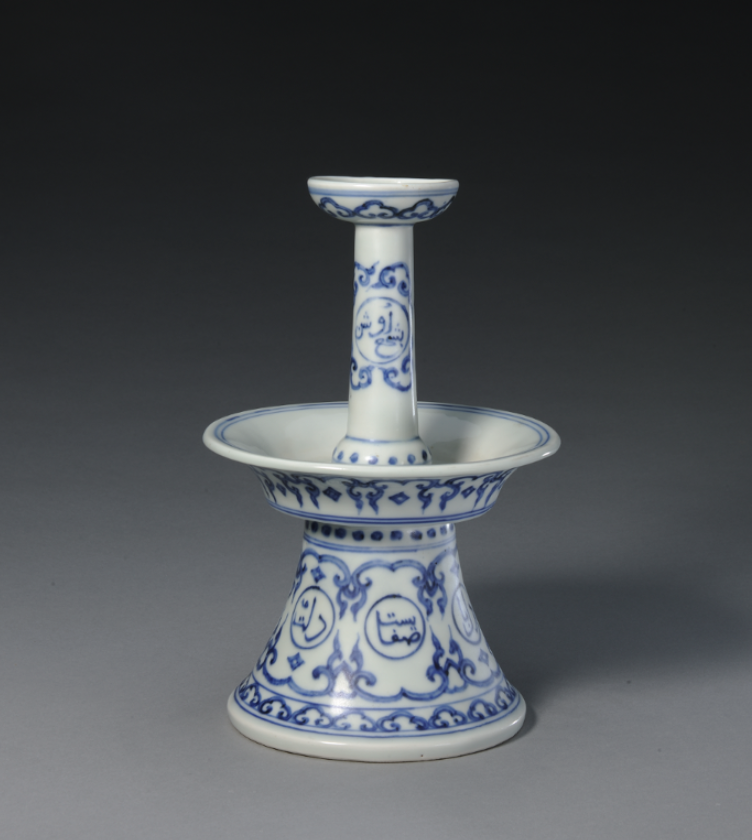 正德款青花阿拉伯文波斯文燭臺(tái),明代。來源/故宮博物院