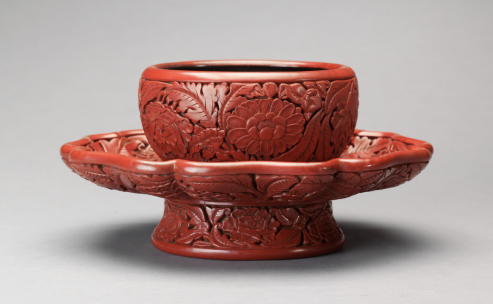 永樂款剔紅花卉紋葵瓣式盞托。來源/故宮博物院