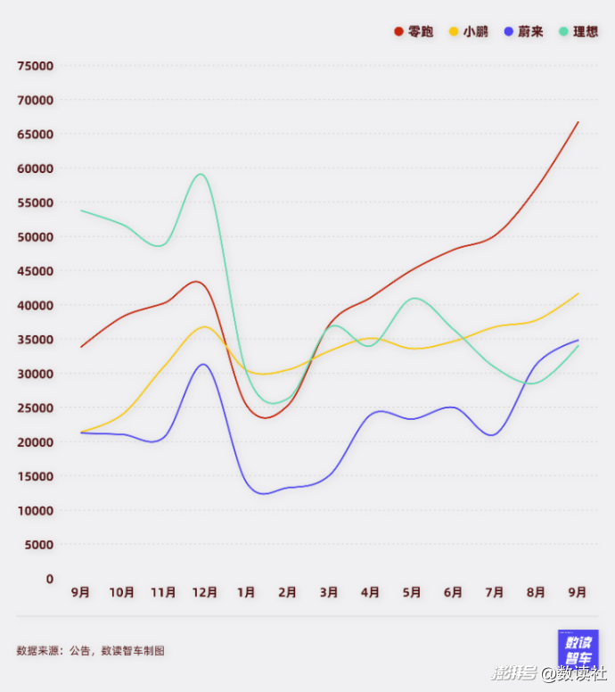 理想已經(jīng)跌到四家車企的吊車尾,零跑反而一騎絕塵沖到理想都未曾達(dá)到的銷量高度。前9個(gè)月,零跑、小鵬的整體銷量已經(jīng)超過(guò)理想。往純電轉(zhuǎn)型,理想的路走得遠(yuǎn)比想象的艱難。