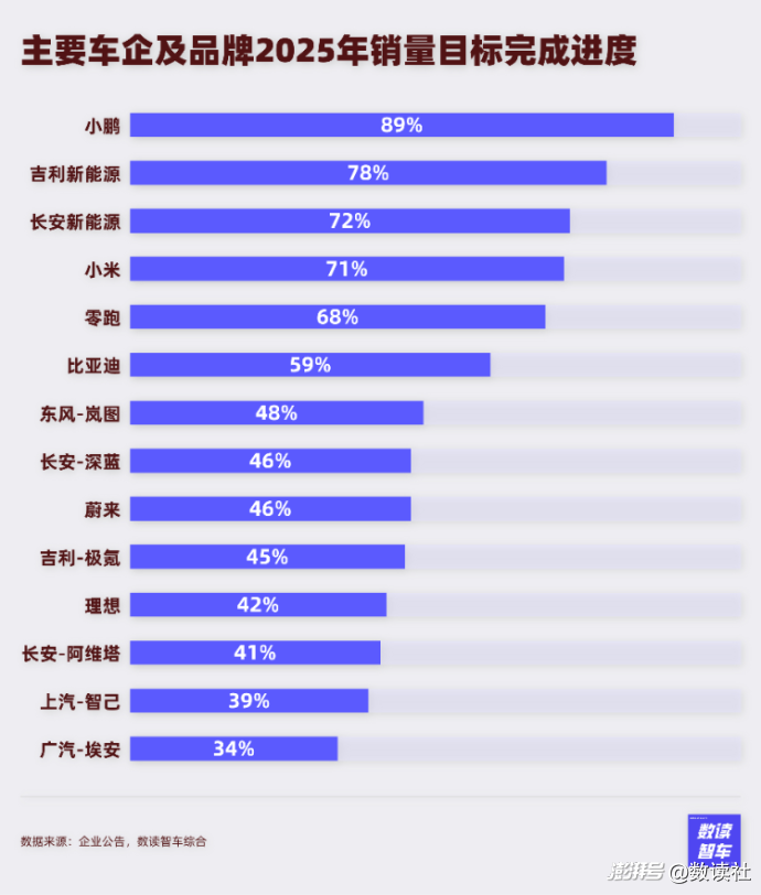 比亞迪尚且完成了近6成指標(biāo),廣汽埃安、上汽智己則幾乎沒(méi)有完成的可能性,目前只完成了不到4成進(jìn)度。
