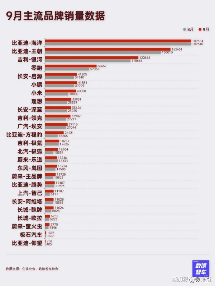 9月,是國(guó)產(chǎn)新能源極為關(guān)鍵的月份。多數(shù)車企都拿出了非常亮眼的數(shù)據(jù)。多家歡喜幾家愁,去年表現(xiàn)強(qiáng)勢(shì)的比亞迪、理想、埃安都遭遇了不同程度的壓力。隨著2025年接近尾聲,新能源的增量市場(chǎng)正在被加速瓜分,車企即將進(jìn)入下一階段的競(jìng)爭(zhēng)。