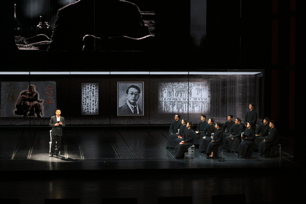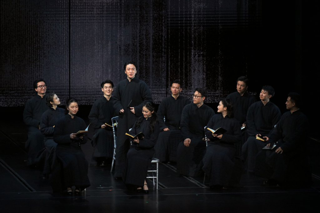 本輪演出現(xiàn)場集結(jié)了王挺、關(guān)曉彤、羅一舟等多位實(shí)力中青年演員。他們以“歌隊(duì)+角色”的雙重身份,完成從敘事者到歷史人物的無縫轉(zhuǎn)換。劇組在排演期間,組織集體研讀文獻(xiàn)、研討角色。演員們通過深入理解角色的作品與人生選擇,在舞臺上實(shí)現(xiàn)與先輩的靈魂對話。