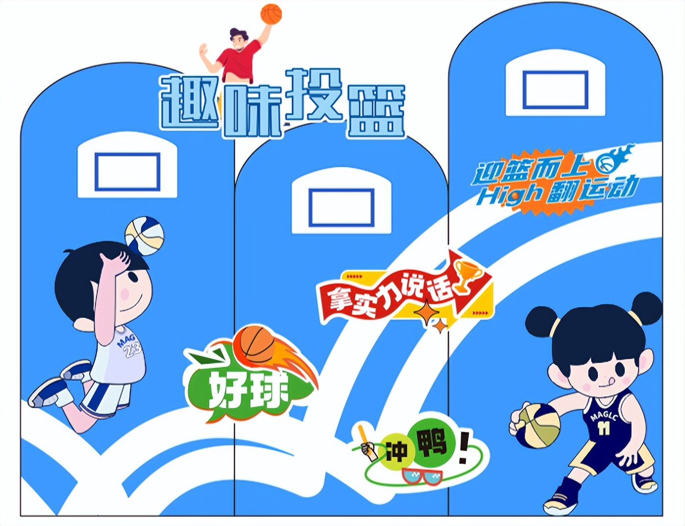 兒童投籃挑戰(zhàn):設置3個兒童籃球架,兒童2米外投中2球/大人2.5米外投中3球就能獲得1枚印章。