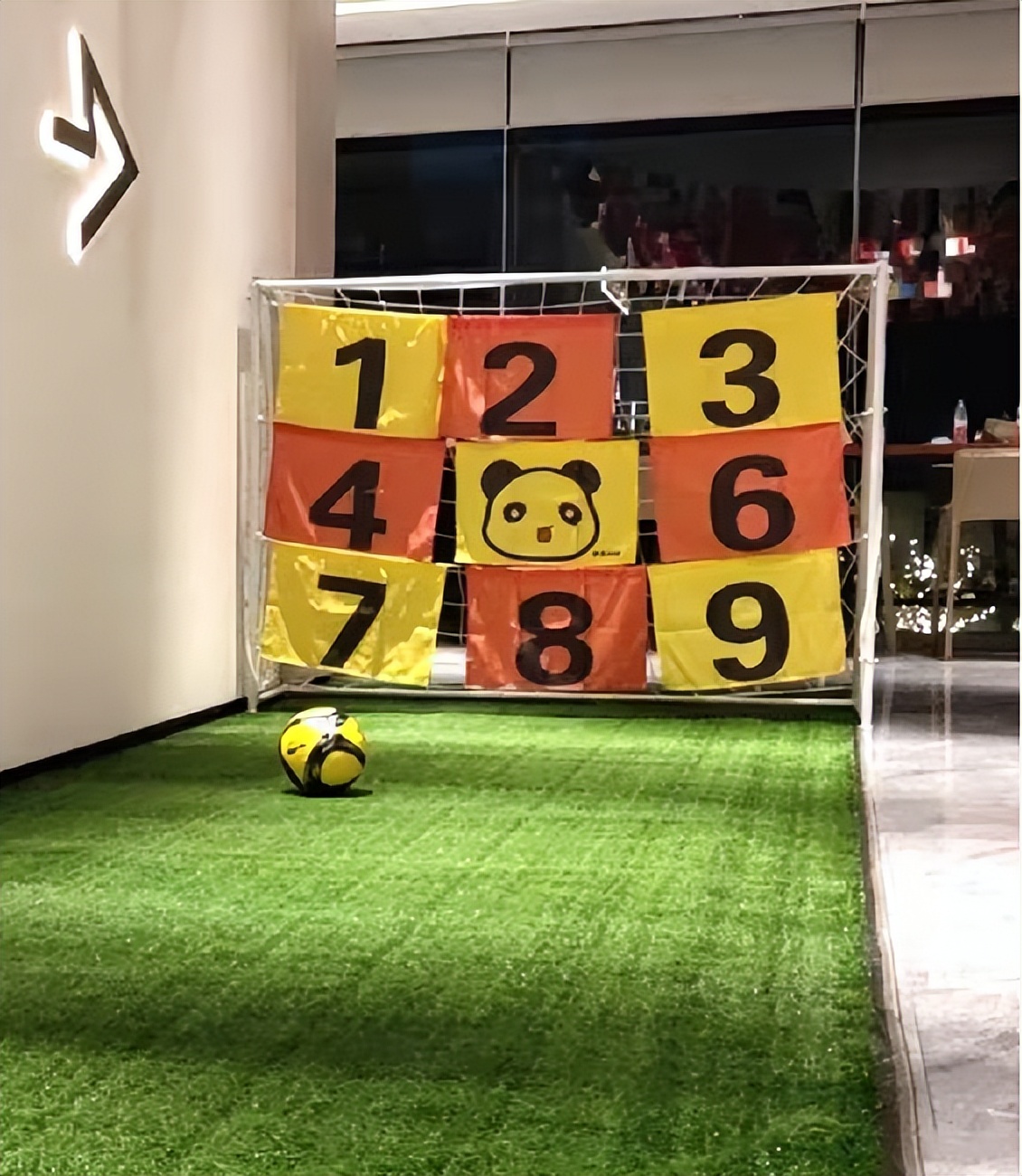 足球射門挑戰(zhàn):參與者在5米外射門,得分大于等于10分就有一個印章,如果到了15分檔可獲得兩個印章。