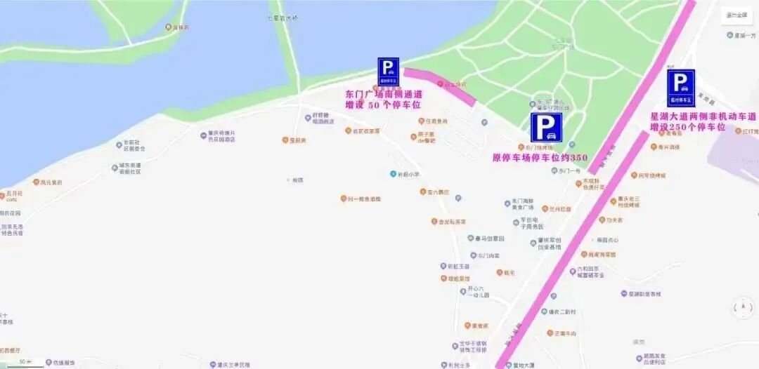 自駕停車:東門停車場約有300多個停車位,視情況東門廣場南側通道單邊停放;東門廣場附近的肇慶市七星巖溫德姆至尊酒店與星湖一方廣場設有近千個停車位。