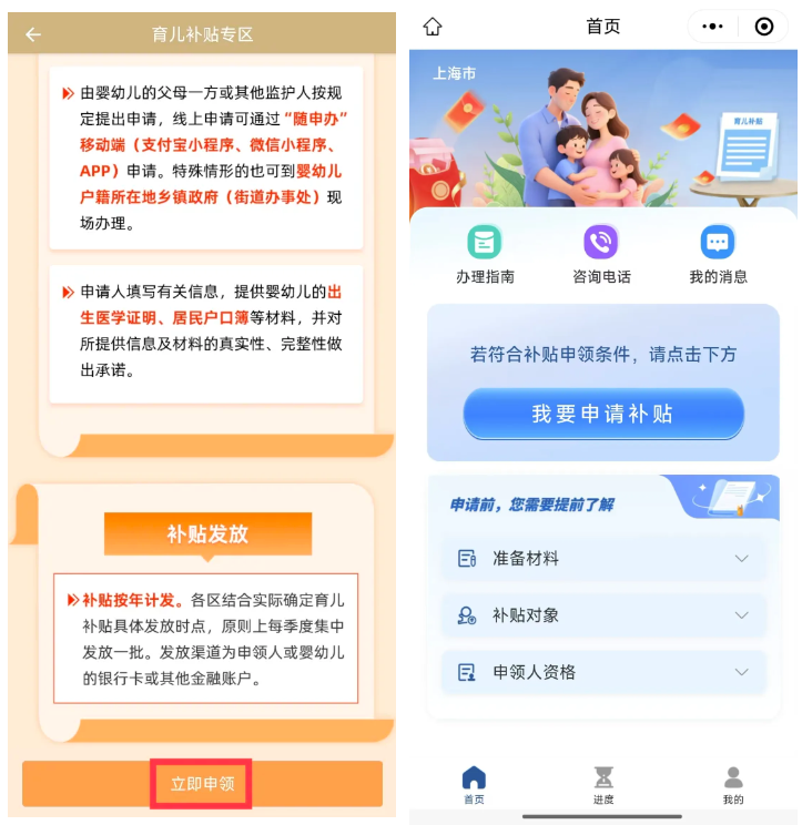 進入方式:打開“隨申辦市民云”APP,點擊首頁“育兒補貼專區(qū)”圖標(biāo)或搜索欄搜索“育兒補貼專區(qū)”點擊進入即可。