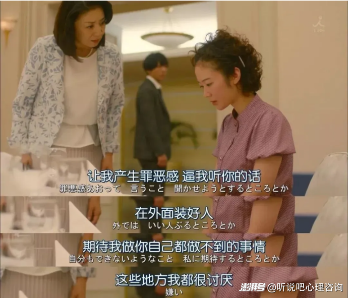 一方面,她逐漸意識(shí)到了自己始終在壓抑自我的需求,去扮演母親喜愛(ài)的順從、乖巧的“小棉襖”,對(duì)此感到無(wú)比的憤怒和壓抑;