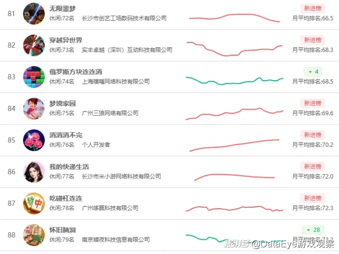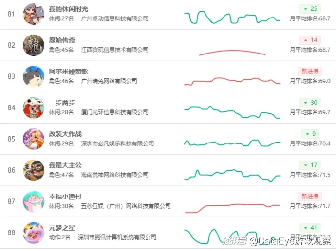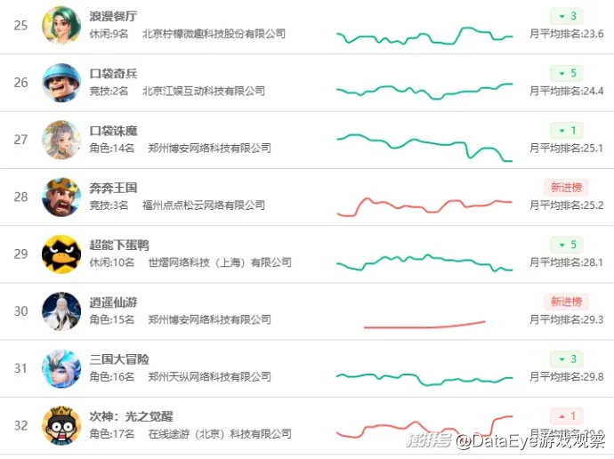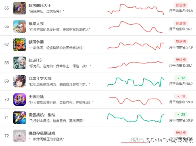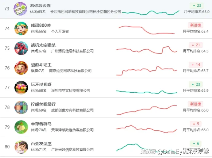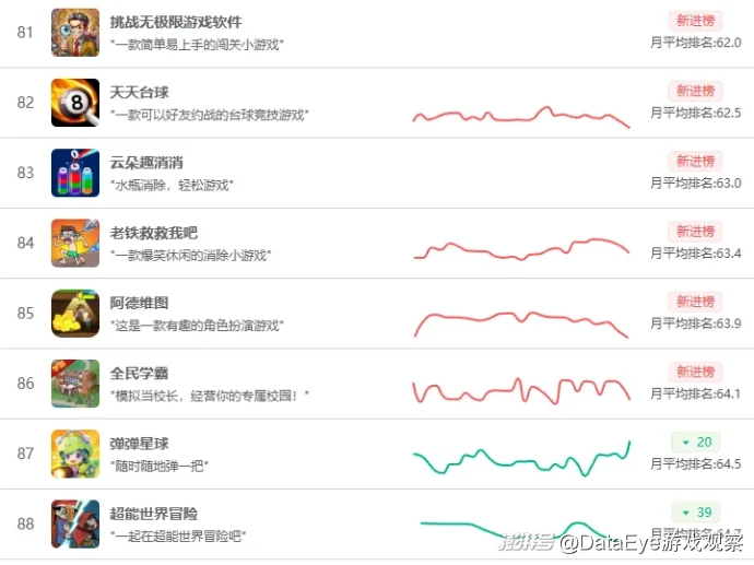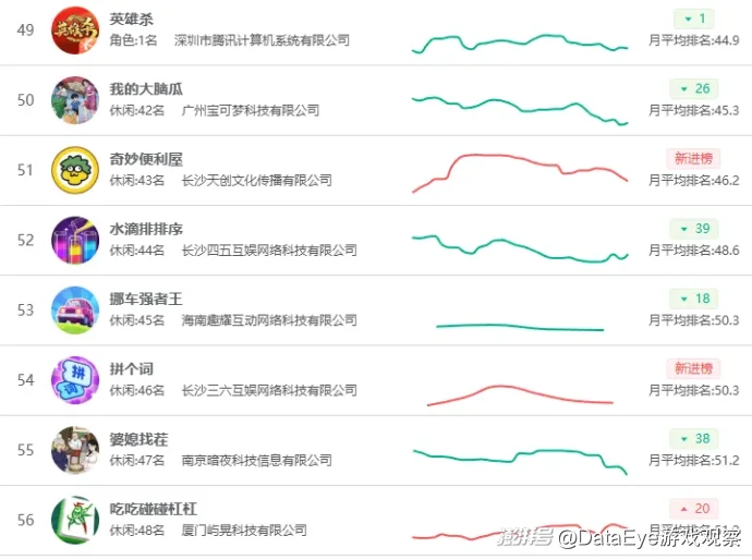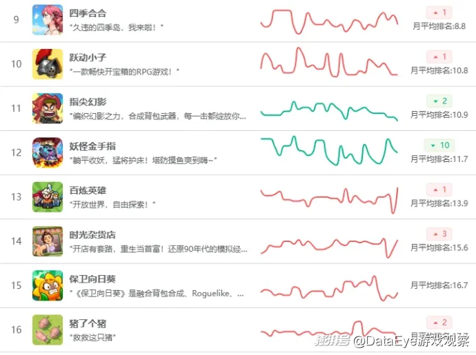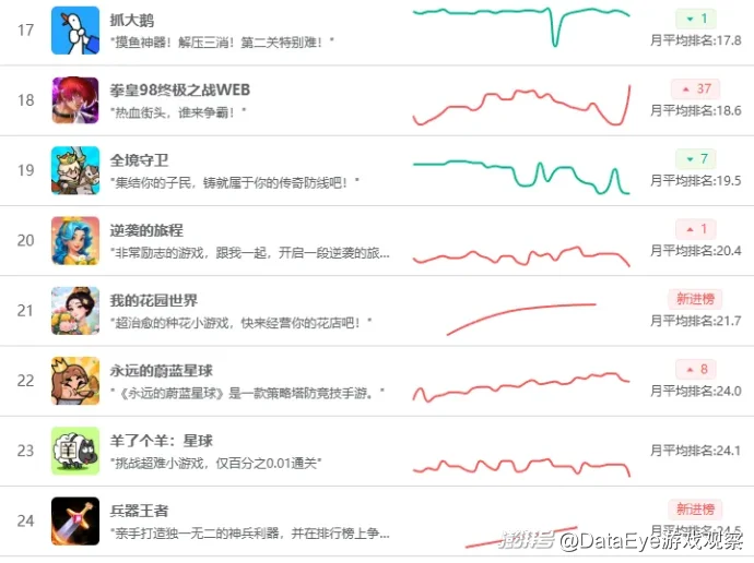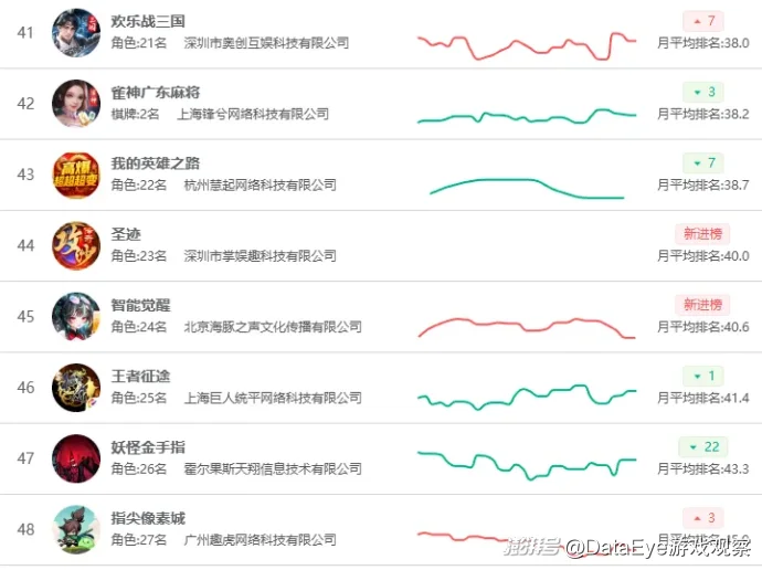 多款產(chǎn)品排名飆升,《永遠的蔚藍星球》沖入TOP10,排名月榜第8名。飛魚科技的《獸化三國》排名提升32名,升至榜單第62名。