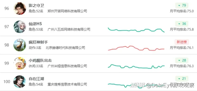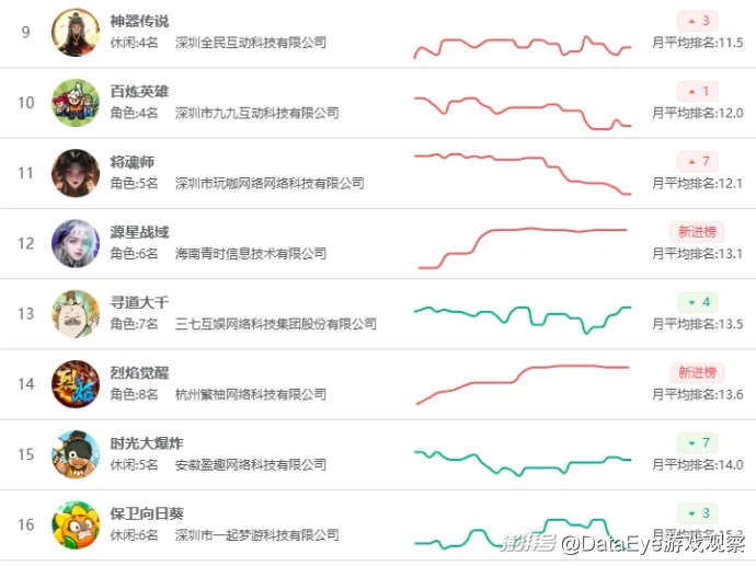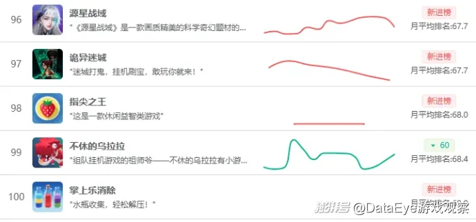 新游中,《源星戰(zhàn)域》《烈焰覺醒》表現(xiàn)突出,分別排名月榜第12名和第14名。