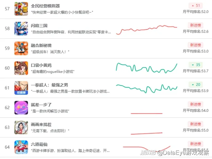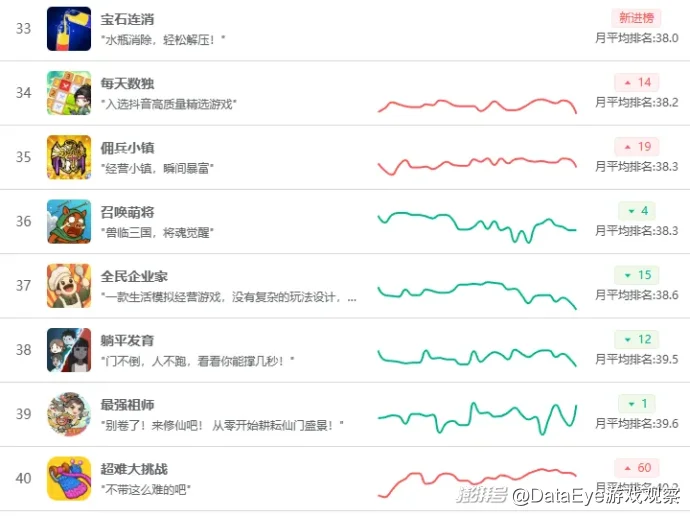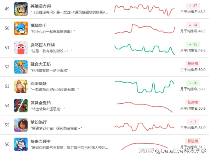 抖小暢銷榜TOP50中,有7款產(chǎn)品為新進榜游戲。而《快來當領主》作為抖小新游首次進入月榜,并排名帶56名。