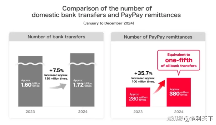 一方面,PayPay是日本無可爭(zhēng)議的無現(xiàn)金支付霸主。作為軟銀集團(tuán)生態(tài)系統(tǒng)的重要一環(huán),PayPay憑借其便捷的移動(dòng)支付服務(wù),已在日本積累了超過7000萬(wàn)的龐大用戶基礎(chǔ)。這幾乎覆蓋了日本過半的人口,其支付網(wǎng)絡(luò)遍布全國(guó)的實(shí)體商店、線上服務(wù)乃至公共事業(yè)繳費(fèi),構(gòu)建了一個(gè)強(qiáng)大的金融基礎(chǔ)設(shè)施。