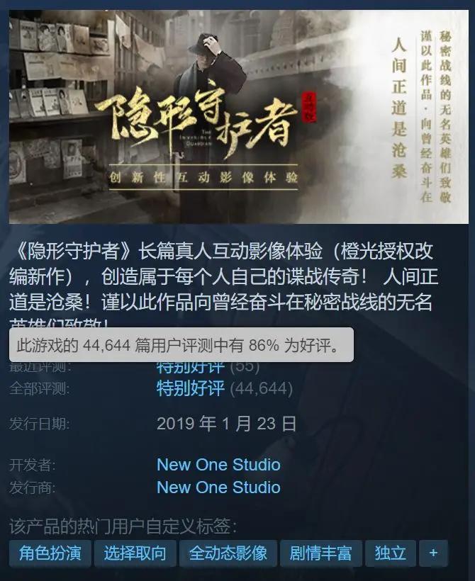 △ 《隱形守護者》在Steam上好評率為86%