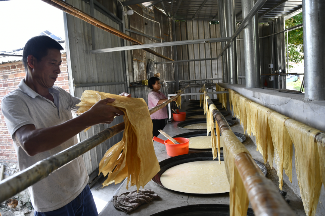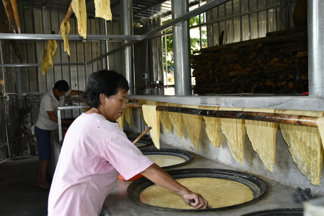 如今的黃崗村,正以鄉(xiāng)村振興為畫筆,為這幅田園畫卷添上更鮮活的色彩。該村緊扣“產(chǎn)業(yè)興旺、生態(tài)宜居、鄉(xiāng)風(fēng)文明、治理有效、生活富?!钡目偰繕?biāo),遵循“因地制宜、試點(diǎn)先行、梯次推進(jìn)”的思路,將傳承百年的“純手工腐竹”工藝打造成特色產(chǎn)業(yè)名片。從泡豆、磨漿到煮漿、揭皮,每一步都保留著傳統(tǒng)手藝的溫度,這份匠心不僅讓黃崗腐竹成為遠(yuǎn)近聞名的特產(chǎn),更帶動(dòng)了經(jīng)濟(jì)社、村集體與農(nóng)戶的收入增長,為鄉(xiāng)村振興注入了產(chǎn)業(yè)動(dòng)能。