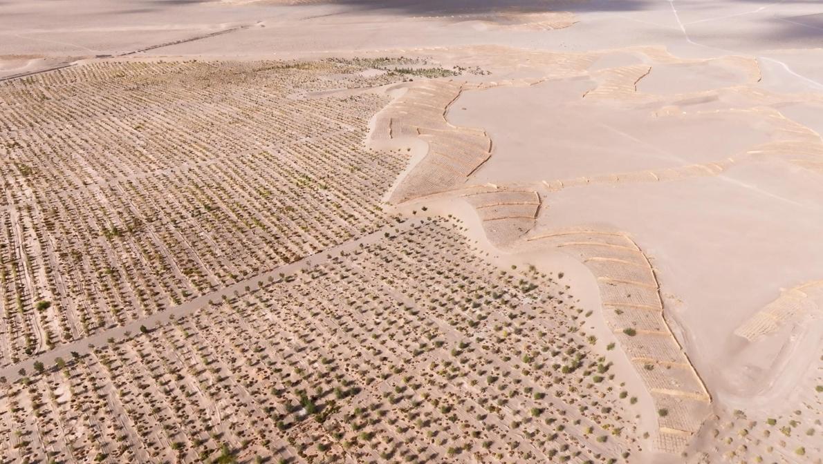 螞蟻森林666號林(胡楊)阻擋巴丹吉林沙漠移動-2025年攝于甘肅金塔