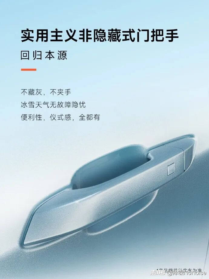不只高端車型,定價不足10萬的平價車也在用自己的方式對抗這種設計缺陷。通用五菱旗下的寶駿云海就在宣傳中強調,其新款車型選擇了實用主義非隱藏式門把手,便利性和儀式感兼具,是真正的「回歸本源」。