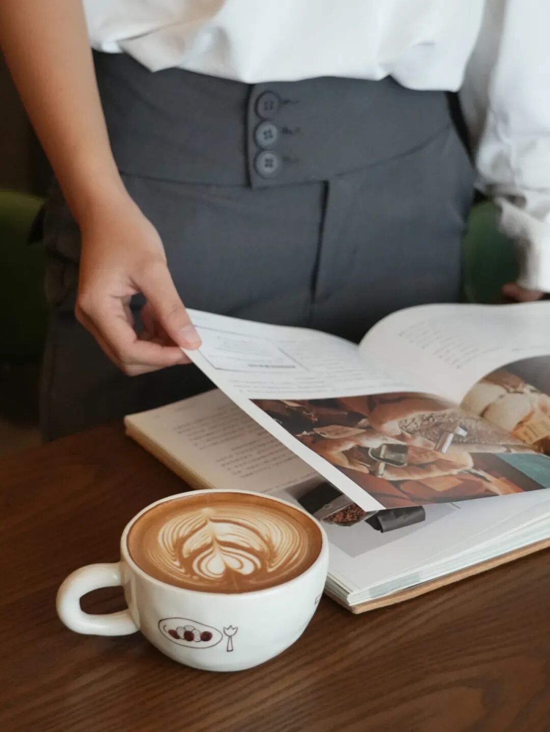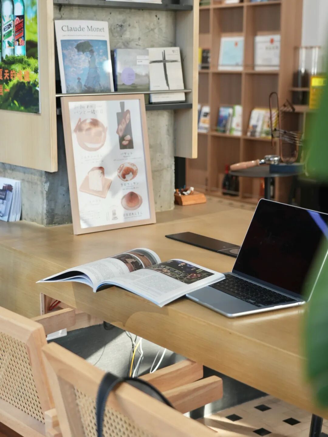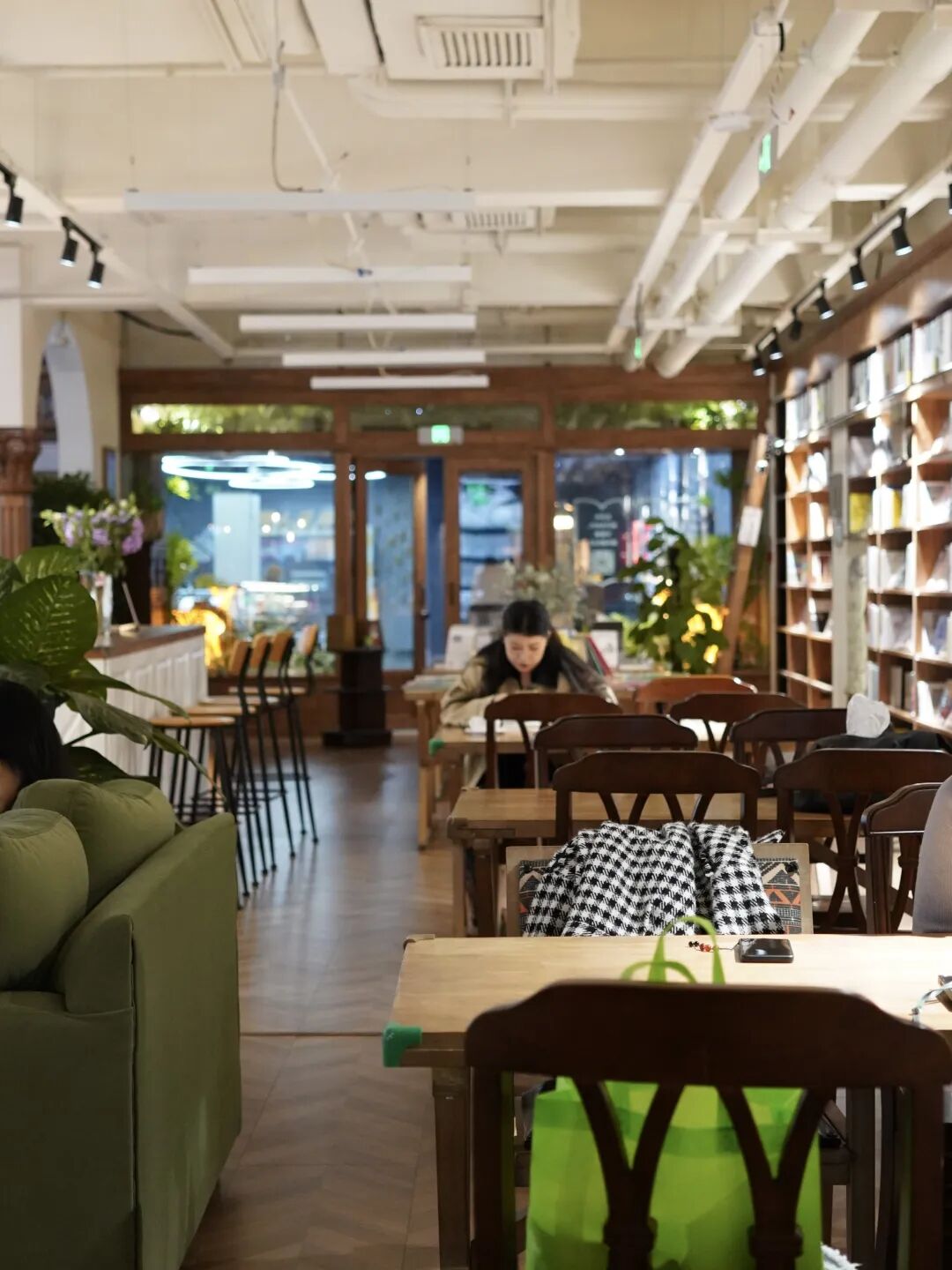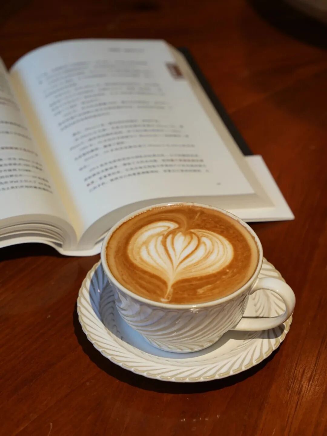 推門而入,原木色書架與柔和燈光交織,空氣中彌漫著書頁(yè)的油墨香與咖啡的醇厚氣息。一杯熱拿鐵,奶和咖啡的比例剛剛好,和這里的氛圍相得益彰。