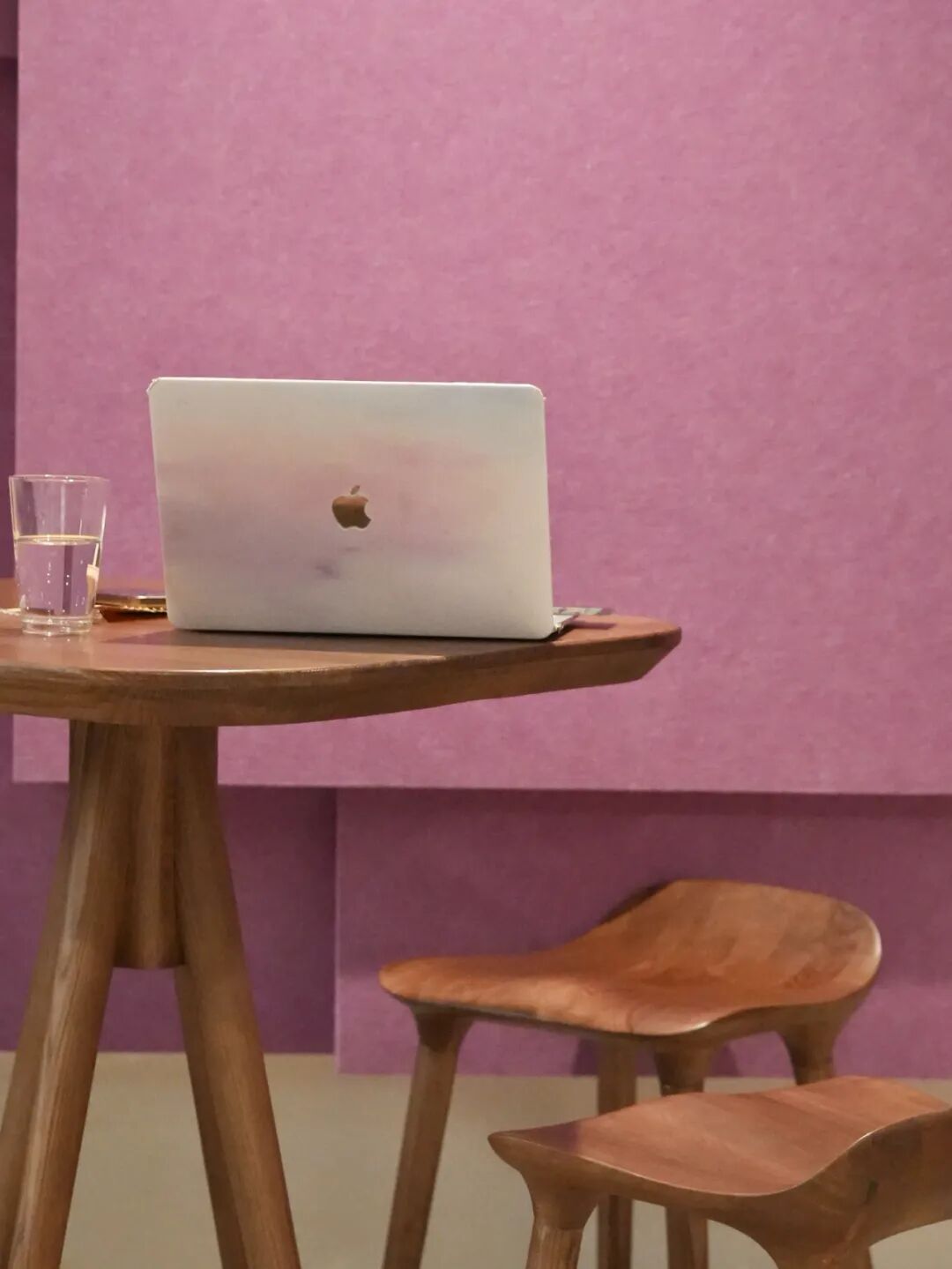 這里像是寫字樓延伸的會(huì)客廳,偶爾能遇見一些來開會(huì)討論的人,低聲交談著,空間更添了份專注。木椅的高度很合適,手肘能自然彎曲,剛好與鍵盤平齊。