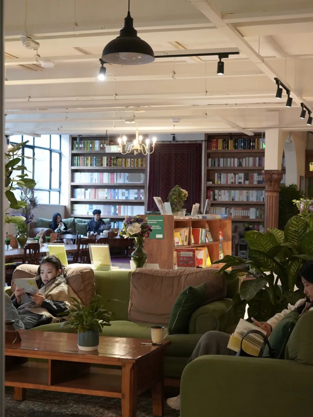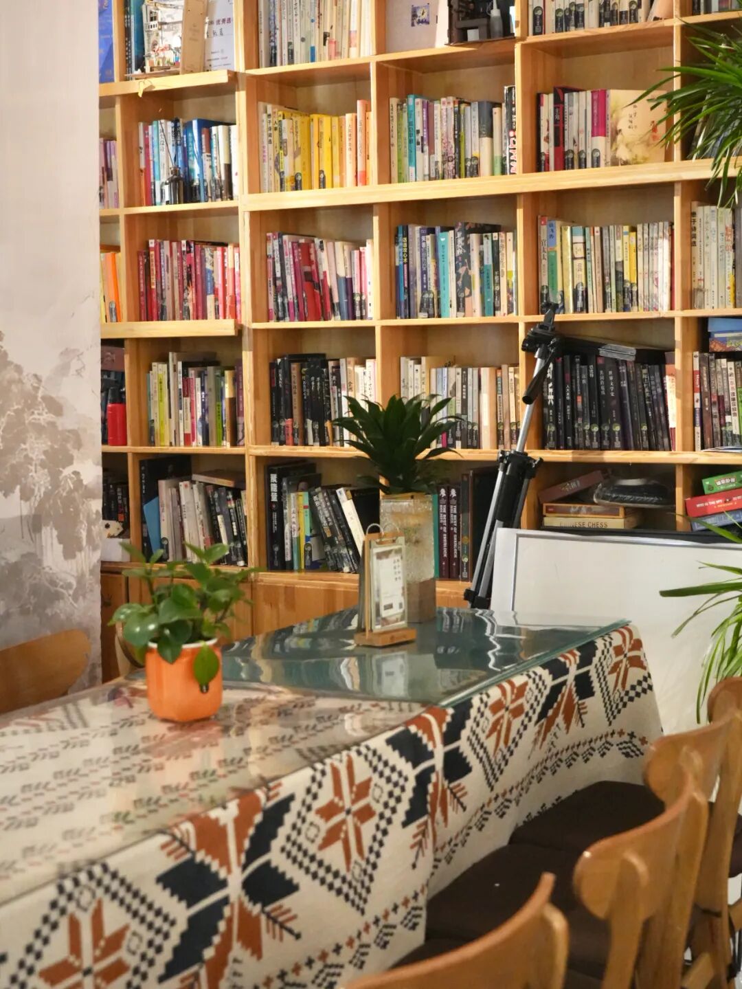 這里每一處似乎都被妥帖安頓??看暗奈恢眠m合安靜地曬太陽(yáng),里間聚著輕聲討論的熟客。書架邊的矮座適合看書,書既能借閱,遇上合心意的,也能買本帶回家。