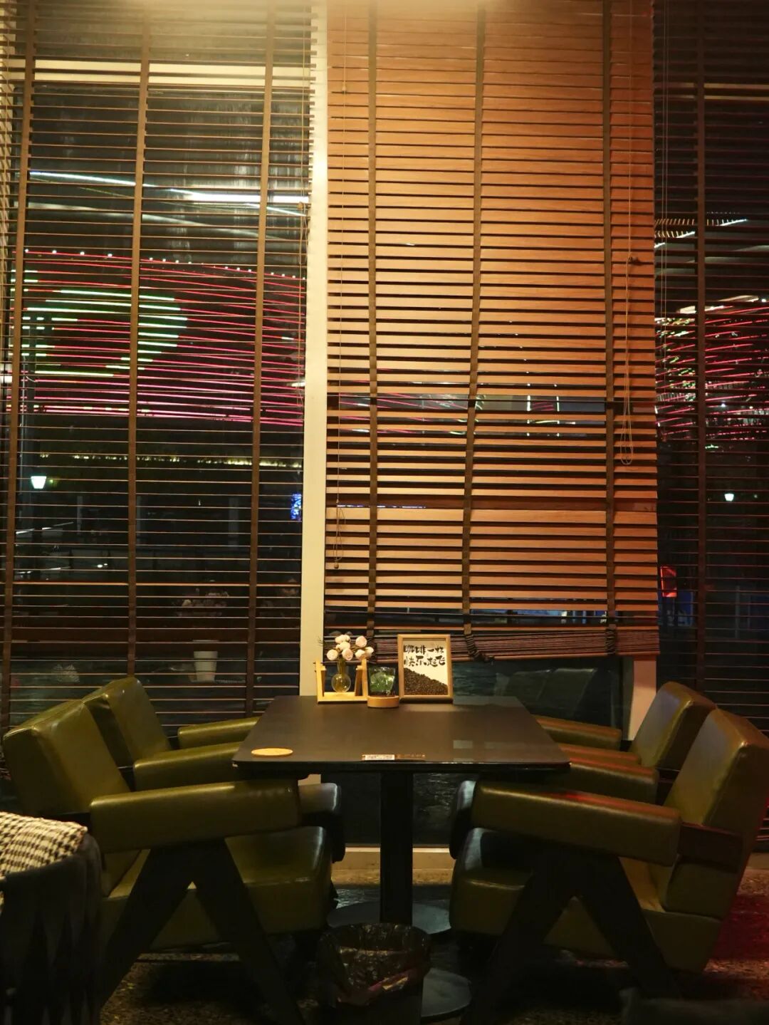 店里不算安靜,卻意外地讓人沉得下心,環(huán)境背景“白噪音”能夠給大腦帶來新的思路和靈感。一整面落地窗框出流動(dòng)的街景。天色漸暗時(shí),窗外車燈流成金線,印著深淺不一的藍(lán)。