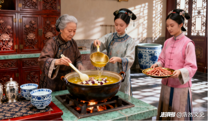 所以您算算,劉姥姥說得一點(diǎn)沒錯(cuò),為了做這么一道茄子,前前后后搭進(jìn)去的雞,少說也得有十來只(熬雞油、燉雞湯、炒雞絲)。這哪里是在吃茄子,分明是在吃“雞的精華”?。≌麄€(gè)制作過程,從選料、刀工,到用油、用湯、用火,再到最后的調(diào)味和封存,每一步都充滿了貴族家庭廚房才有的那種不計(jì)成本的講究和從容。