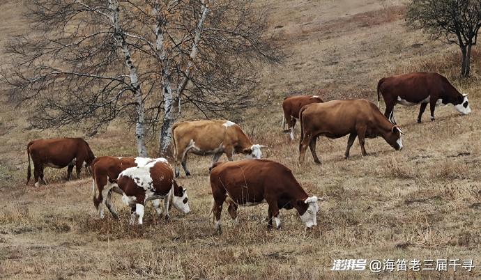 在一片坡地,有許多牛兒,三三兩兩,它們散落在林間,或漫步吃草,或臥著咀嚼反皺著口中的食物。陽(yáng)光照在它們油亮的皮毛上,泛出金紅的光,又是一番風(fēng)景。這是草原上的牛,大約是最幸福的了。既不必為生計(jì)奔忙,也不必受鞭笞之苦,只是吃草、曬太陽(yáng),悠悠然度時(shí)日。它們的眼神里,竟沒(méi)有一絲惶急,只有平靜與滿足。