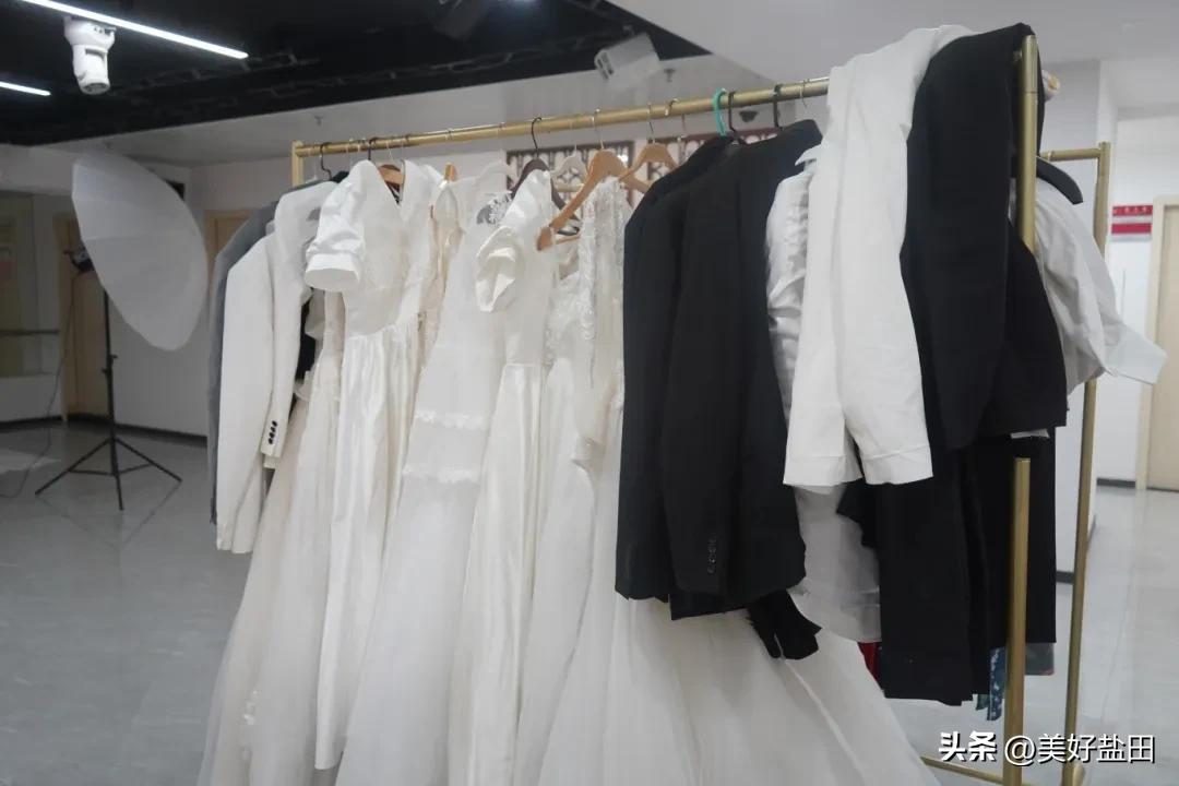 活動當(dāng)天清晨,工作人員早已忙碌起來:化妝師擺開用具,服裝師掛起各式各樣的婚紗、典雅旗袍和西服,攝影師則在另一邊熟練地布置背景幕布、架設(shè)補(bǔ)光燈。轉(zhuǎn)眼間,一個專業(yè)的攝影場地準(zhǔn)備就緒。
