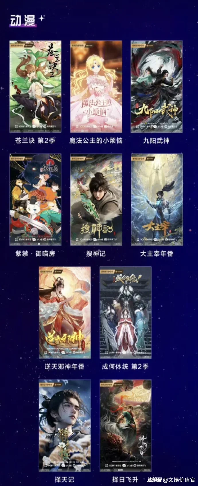 從內容定義來看,年番指52集左右、全年周更的長篇動畫。目前,騰訊視頻主打12部年番覆蓋全年檔期;愛奇藝2025iJOY秋季悅享會公布的新片單中,年番數(shù)量從去年的2部增至7部,覆蓋玄幻、科幻、懸疑等多類型;優(yōu)酷和B站也在持續(xù)加大對年番的投入。