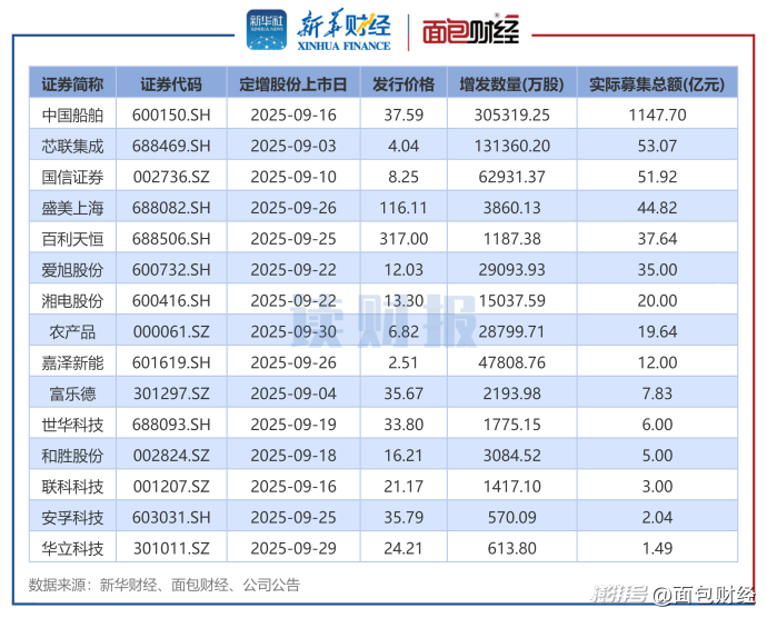 【讀財(cái)報(bào)】9月上市公司定增動態(tài):實(shí)際募資總額1447億元