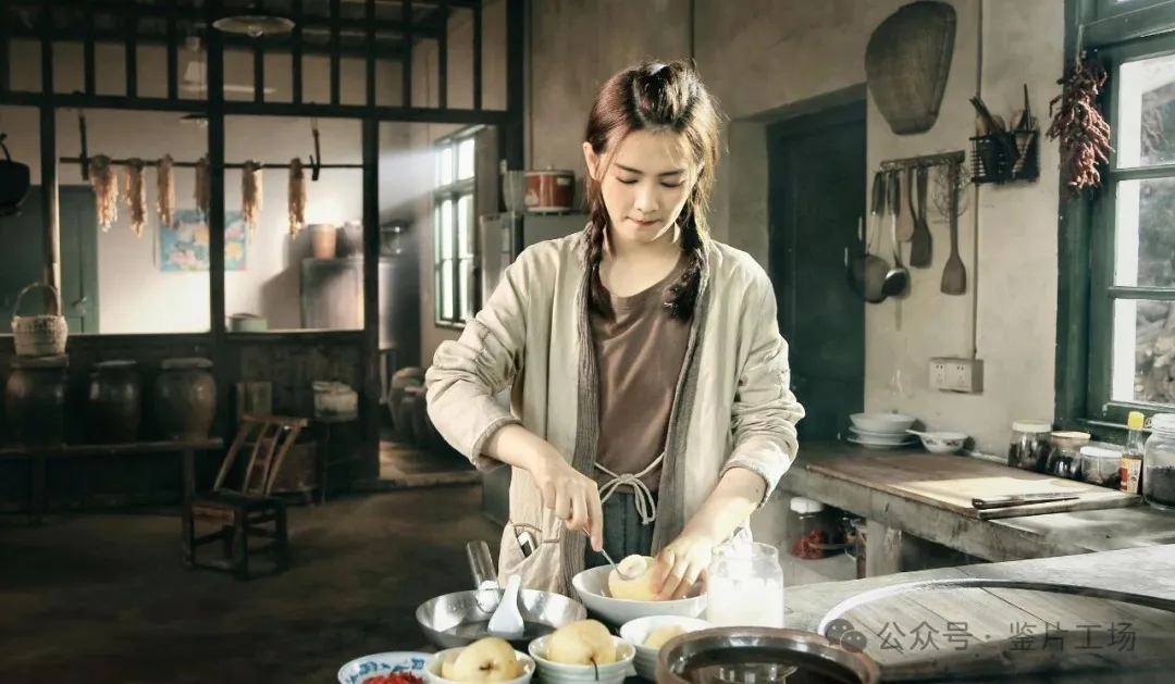 聲效中的味覺記憶編碼。聲音設(shè)計以“環(huán)境音-美食音-對話”的層次結(jié)構(gòu)服務(wù)于味覺敘事,尤其注重食物制作過程中的聲音細節(jié)。在青禾與外婆夜談的場景中,柴火噼啪聲與陶罐咕嘟聲構(gòu)成聲景主體,人聲則被控制在柔和的聽覺閾值內(nèi),這種處理暗合味覺記憶的存儲規(guī)律,正如吳彥姝飾演的外婆所說:“人老了,最先記住的是炒菜聲,最后忘記的還是炒菜聲”。當青禾終于復(fù)刻出外婆的山楂條配方時,影片突然消去所有環(huán)境音,只留下牙齒咬碎果脯的清脆聲響,這種聲音的“減法”處理,將味覺的瞬間體驗升華為情感的高潮,讓觀眾通過聽覺直抵角色內(nèi)心的和解時刻。這種聲效設(shè)計與影片17處嚴格遵循民間工藝的食物制作場景形成呼應(yīng),共同構(gòu)建起“可聆聽的味覺記憶”。