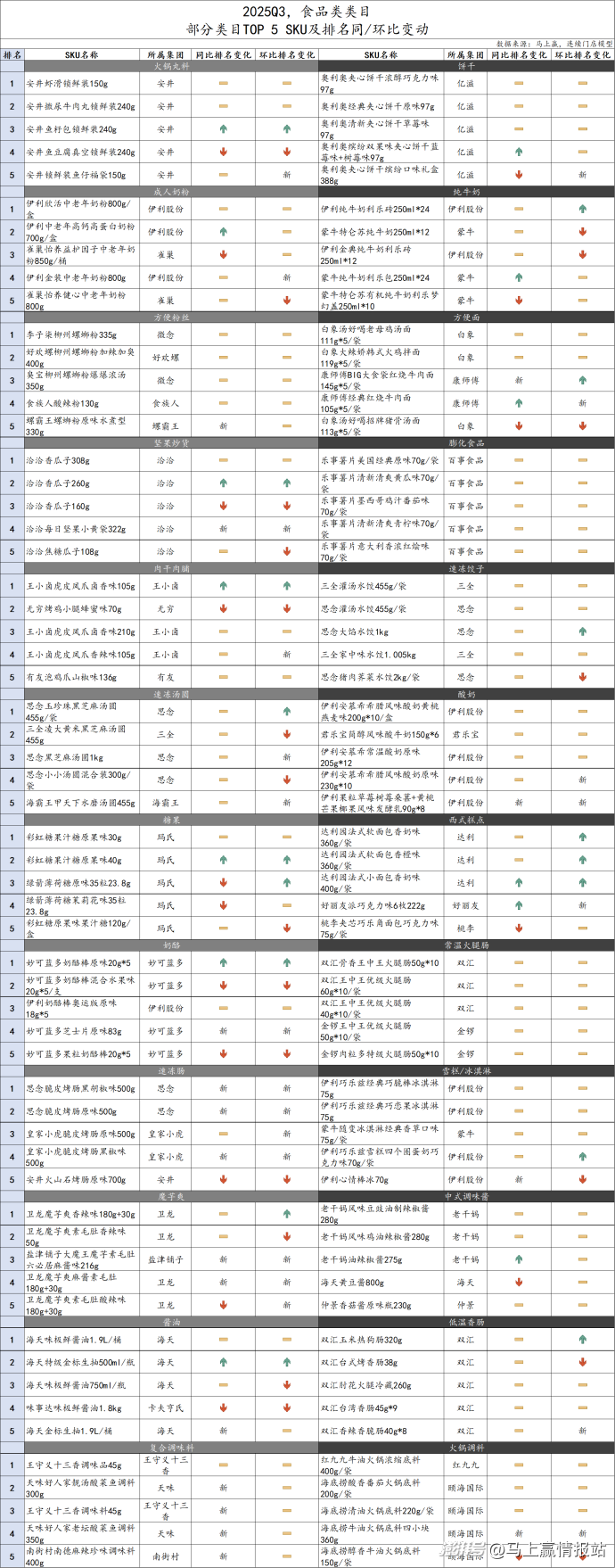 在本季度食品類類目的Top SKU變動上,幾個點(diǎn)的變化值得關(guān)注: