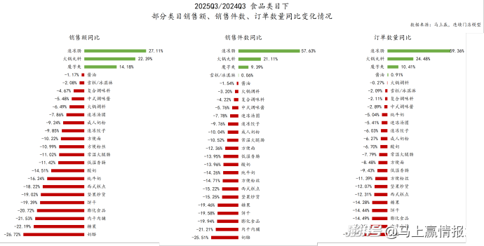 從整體來看,2025Q3食品類目中,速凍腸、火鍋丸料、魔芋爽成為少數(shù)在銷售額、銷售件數(shù)、訂單數(shù)量三個指標(biāo)上均實(shí)現(xiàn)同比增長的類目,表現(xiàn)亮眼。雖然三個類目整體的規(guī)模都不算大,在諸多的傳統(tǒng)食品類目中也都可以算是“新興產(chǎn)品”,但其較好的漲勢或許也體現(xiàn)出了消費(fèi)需求的變化趨勢----圍繞著方便、健康、多樣化進(jìn)行產(chǎn)品形態(tài)的延展與創(chuàng)新。