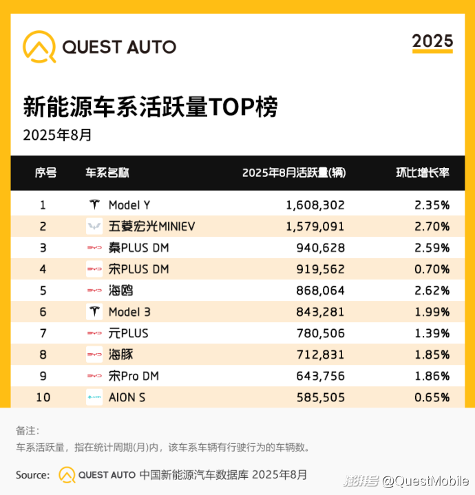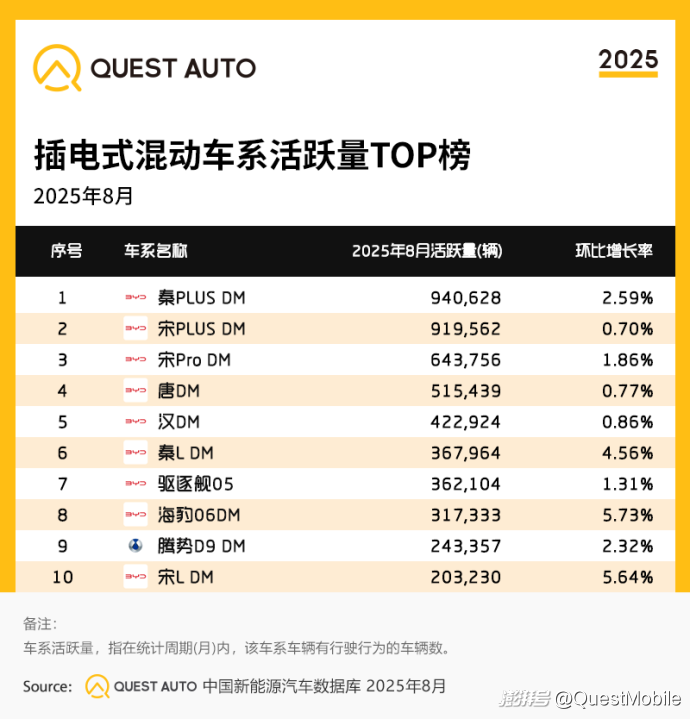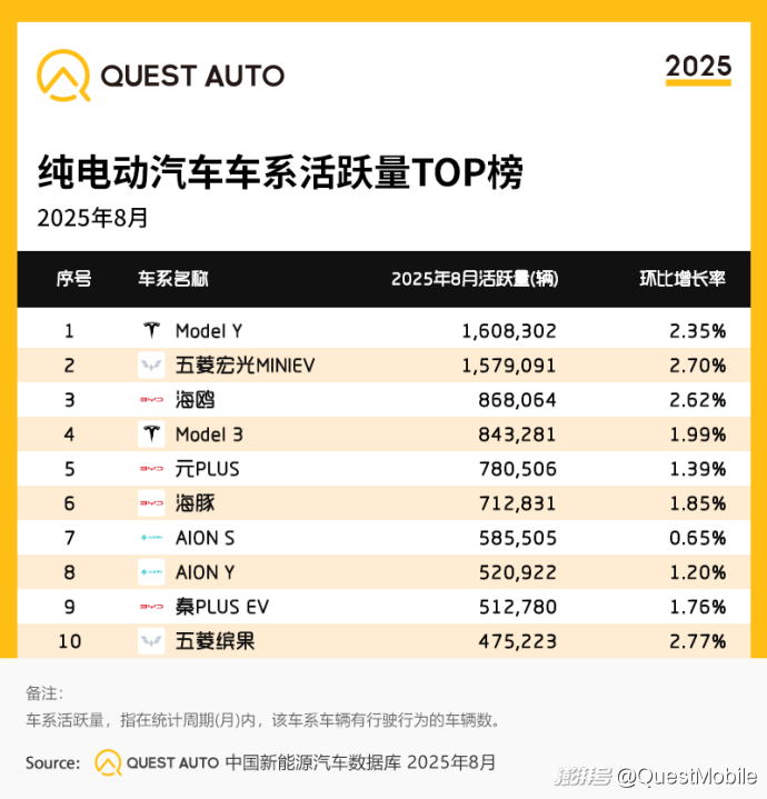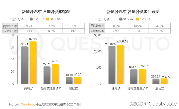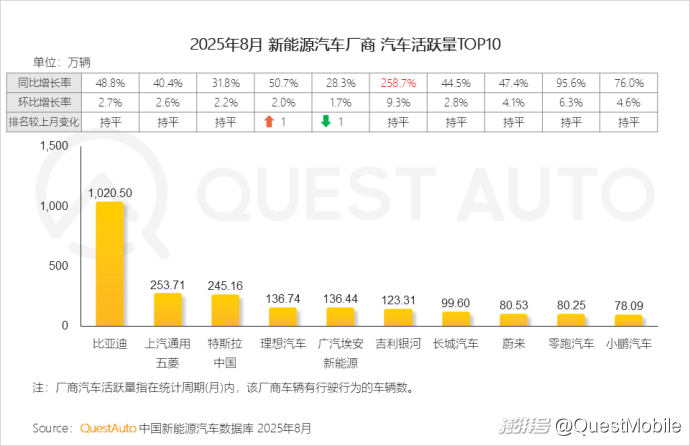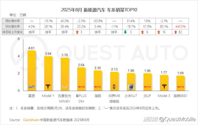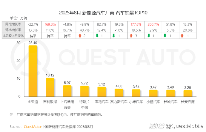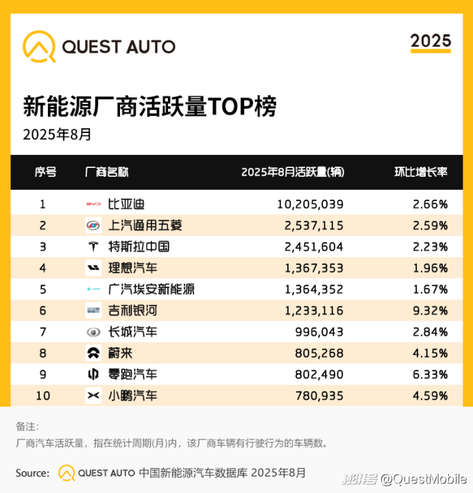 QuestAuto新能源汽車8月報:比亞迪月活破千萬,同比增長48.8%