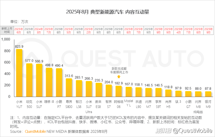 2、8月恰逢成都車展,多款新車密集預(yù)熱,部分車企采取“搶跑”策略提前發(fā)布新車,助推討論熱度持續(xù)升溫