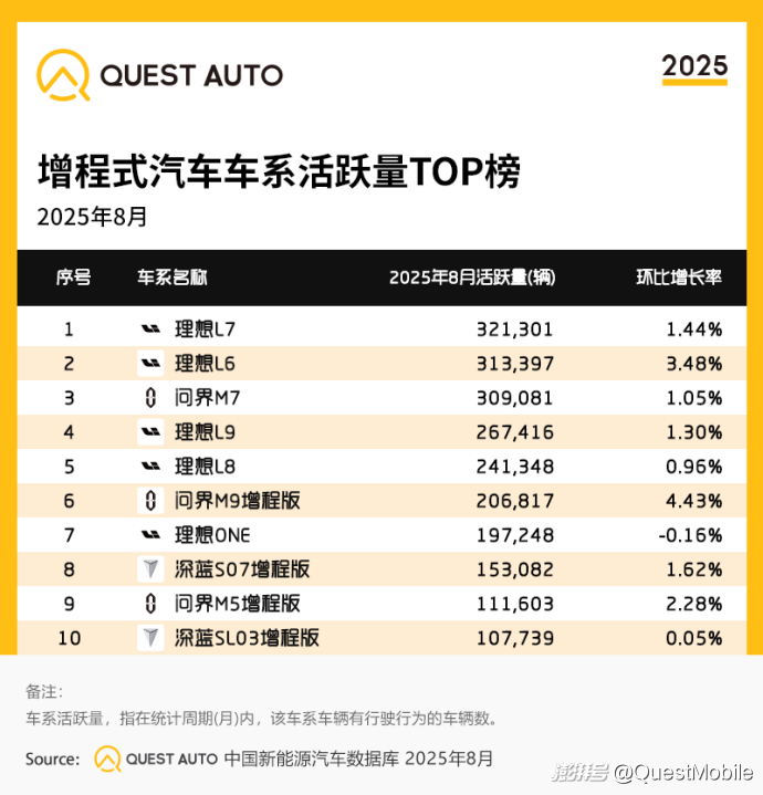 5、增程式汽車車系活躍量TOP榜